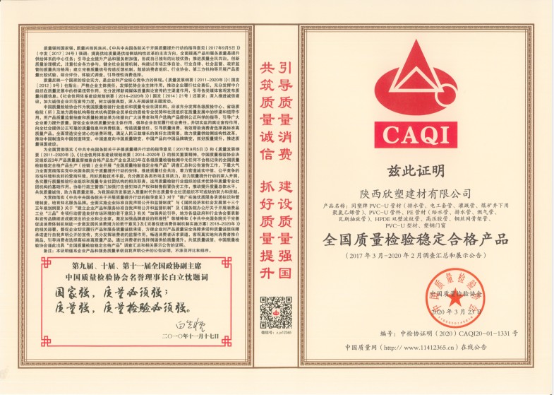 近日,從中國質(zhì)量檢驗協(xié)會傳來消息,欣塑公司“同塑”牌PE管材、高壓膠管、HPDE雙壁波紋管、PVC型材、管材、管件、塑鋼門窗等產(chǎn)品喜獲“全國質(zhì)量檢驗穩(wěn)定合格產(chǎn)品”殊榮。