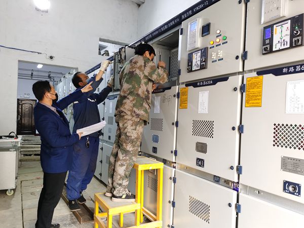 機(jī)柜更換期間,該礦機(jī)電管理部室和機(jī)電運(yùn)轉(zhuǎn)隊(duì)廣大干群積極配合欣榮配售電公司,嚴(yán)格落實(shí)各項(xiàng)規(guī)章制度和相關(guān)施工措施,首先對(duì)變電所一回路高壓機(jī)柜進(jìn)行停電、驗(yàn)電、放電、拆除,然后換上新的機(jī)柜。在施工過程中,大家齊心協(xié)力,先將底座螺絲一個(gè)個(gè)拆除掉,在廠家的指導(dǎo)下,將連接高低壓柜的線路逐一分解拆除,然后用倒鏈將更換下來的老舊機(jī)柜移動(dòng)到指定地點(diǎn),再將新的高低壓機(jī)柜搬運(yùn)到變電所配電室進(jìn)行安裝。在單回路供電期間,該礦機(jī)電運(yùn)轉(zhuǎn)隊(duì)安排專職維修電工,加強(qiáng)變電所高低壓開關(guān)柜變壓器供電電纜巡視、維護(hù),值班人員和電工現(xiàn)場(chǎng)值守,及時(shí)了解負(fù)荷動(dòng)態(tài)變化,每小時(shí)記錄高低壓變電所設(shè)備運(yùn)行技術(shù)參數(shù),根據(jù)單回路供電期間負(fù)荷變化情況,及時(shí)調(diào)整井上供電設(shè)備運(yùn)行情況,發(fā)現(xiàn)問題立即處理,防止發(fā)生停電事故,并制定大面積停電相關(guān)應(yīng)急預(yù)案,確保單回路供電萬無一失。