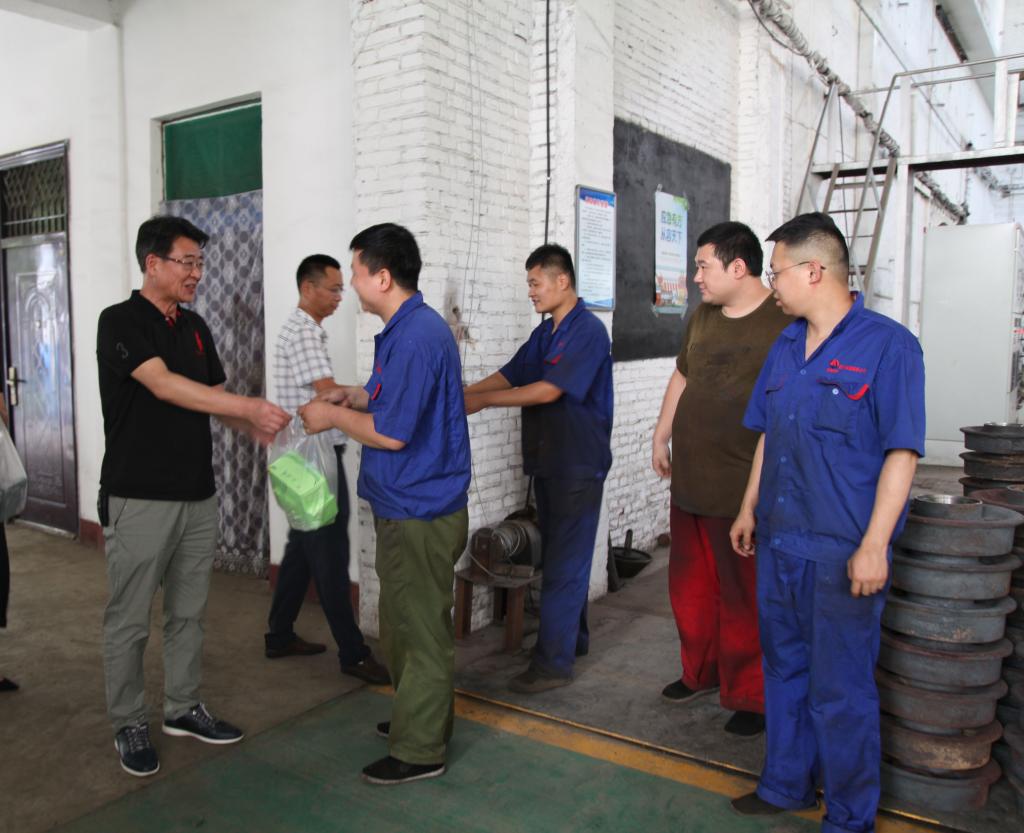 近日,機(jī)電分公司黨政領(lǐng)導(dǎo)分別到大修車間、煤專車間、機(jī)電修理車間、皮帶機(jī)分廠、安裝公司、綜機(jī)中心等6個(gè)車間和生產(chǎn)現(xiàn)場(chǎng),看望慰問(wèn)高溫天氣下仍?shī)^戰(zhàn)在一線的干部職工,向他們?cè)诹胰障聯(lián)]灑汗水、辛勤工作表示由衷的敬佩和感謝,叮囑他們?cè)谙募旧a(chǎn)生活中務(wù)必要注意身體,切實(shí)做好防暑降溫措施,同時(shí)要不斷持續(xù)加強(qiáng)現(xiàn)場(chǎng)安全管理和疫情防控工作,并將茶葉、白糖、綠豆、藿香正氣水、風(fēng)油精及蚊香等防暑降溫物資送到他們手中。