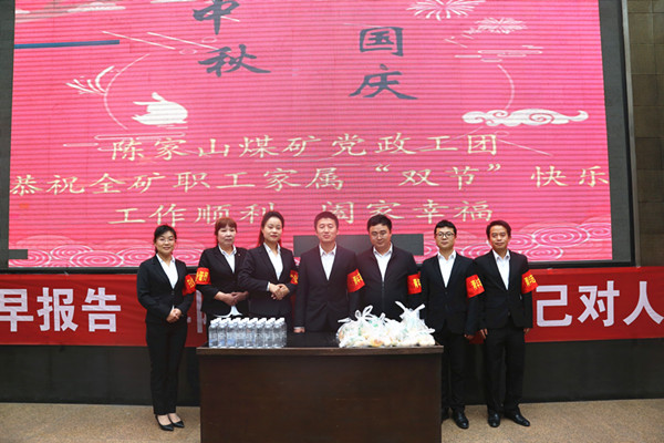 賀中秋,迎國慶。為了讓全礦干部職工度過一個歡樂、幸福、溫馨的雙節(jié),陳家山煤礦開展“濃情送溫暖囑安全”活動,向干部職工送上“中秋”“國慶”雙節(jié)的祝福和安全囑托。