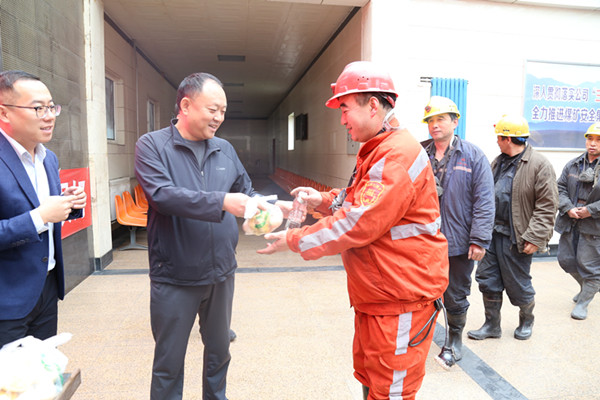 節(jié)日當(dāng)天上午,該礦井口候車室一片歡聲笑語,充滿著濃濃的節(jié)日氣氛。該礦黨政領(lǐng)導(dǎo)為節(jié)日里依然堅守崗位的一線職工送上自制的月餅、雞蛋、礦泉水等節(jié)日慰問品,并向他們致以節(jié)日的問候,囑咐他們一定要時刻牢記安全,工作中遵章守紀(jì),安全作業(yè)。