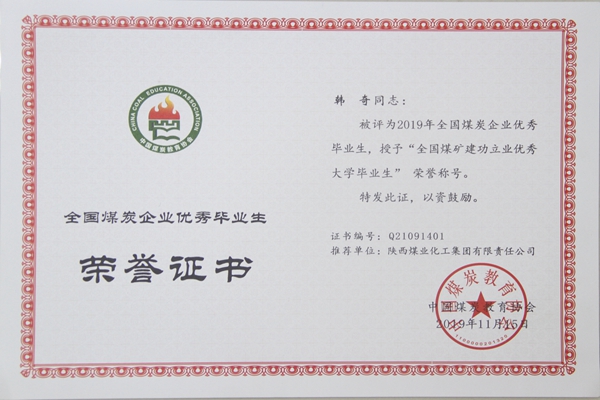 六年的不懈耕耘,六年的刻苦鉆研,堅定了他干好事業(yè)的決心和雄心,也迎來了收獲的春天。從剛參加工作的“煤礦小白”到生產(chǎn)科技術(shù)骨干、全國煤炭企業(yè)優(yōu)秀畢業(yè)生,他用了六年時間。