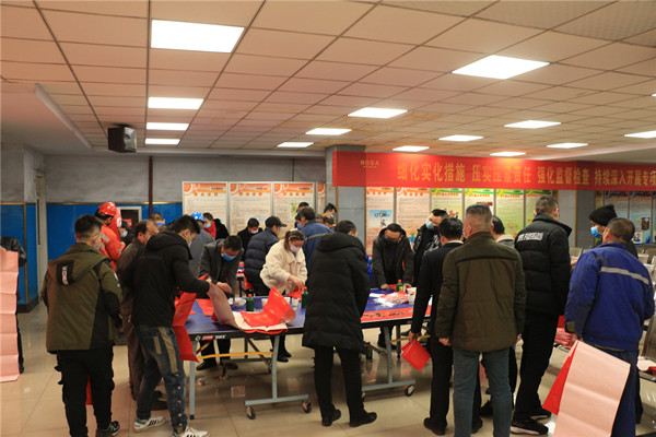 2月11日,大年三十上午,采掘區(qū)隊(duì)樓里格外熱鬧,職工擦拭門楣、架梯子、看高低、遞膠帶、貼春聯(lián),映襯的區(qū)隊(duì)樓里火紅一片。大家拱手互道新年好,喜慶幸福洋溢在每個(gè)人的臉上。礦區(qū)大門“瑞雪鋪煤城兆礦區(qū)和諧興旺、寒梅映礦山報(bào)煤海宏圖大展”的對聯(lián),格外鮮艷醒目,礦山春來早,奮斗正當(dāng)時(shí)。