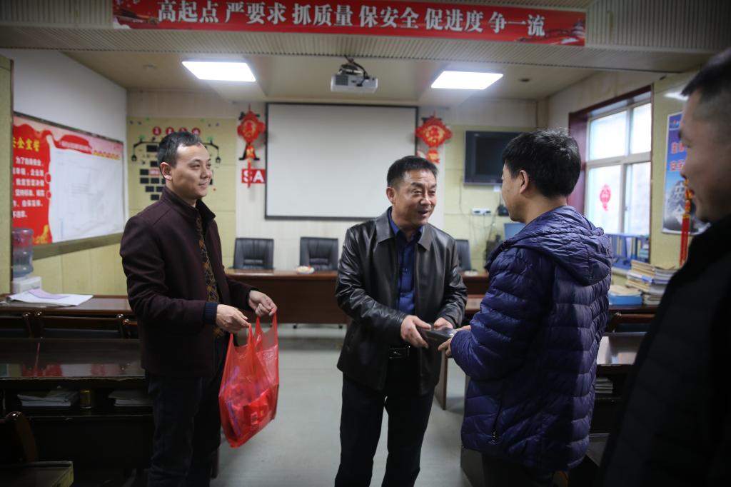 春節(jié)期間,柴家溝井班子成員及相關(guān)部門(mén)負(fù)責(zé)人深入到地面各重點(diǎn)工作場(chǎng)所,看望慰問(wèn)了春節(jié)期間仍然堅(jiān)守工作崗位的干部職工,向大家致以新春的祝福和美好的祝愿,并送上了慰問(wèn)品。