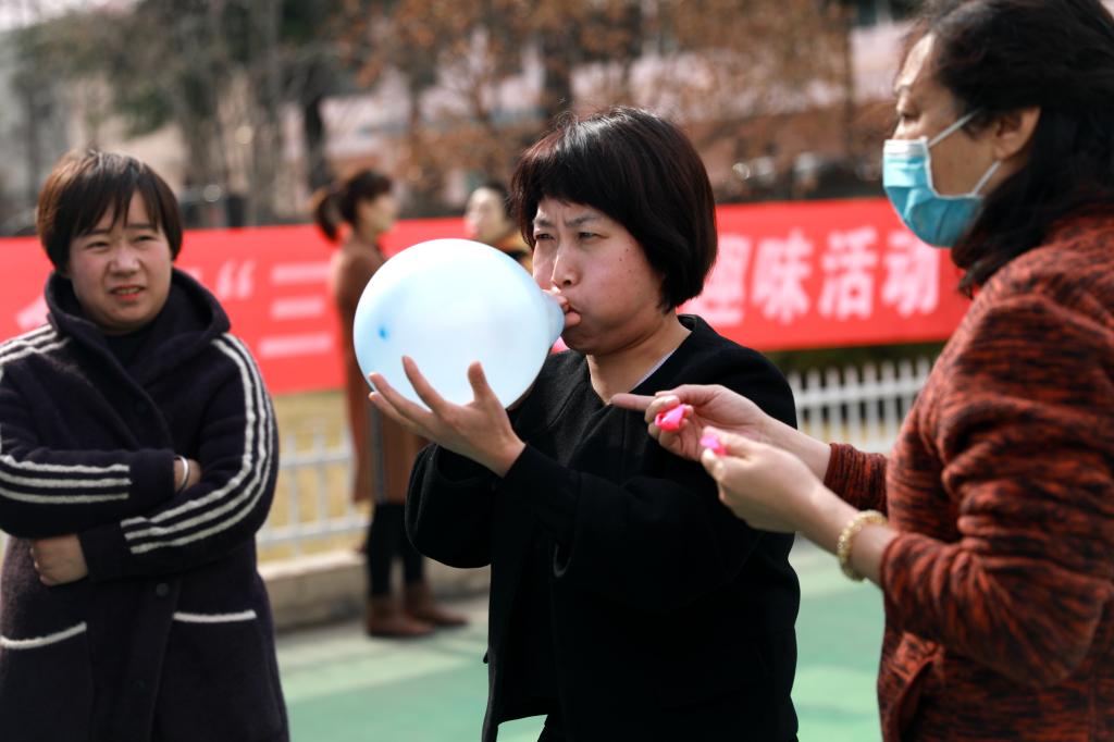 在“吹氣球”項(xiàng)目中,每?jī)擅毠ひ唤M,在一分鐘內(nèi)按要求大小吹的氣球越多算獲勝,比賽中,有的女職工鼓起腮幫但效果欠佳,有的則迅速掌握要領(lǐng),將吹好的氣球自豪的在手中揮舞,引來大家的熱烈掌聲?;顒?dòng)在此起彼伏的歡笑聲中一度將活動(dòng)推向高潮。