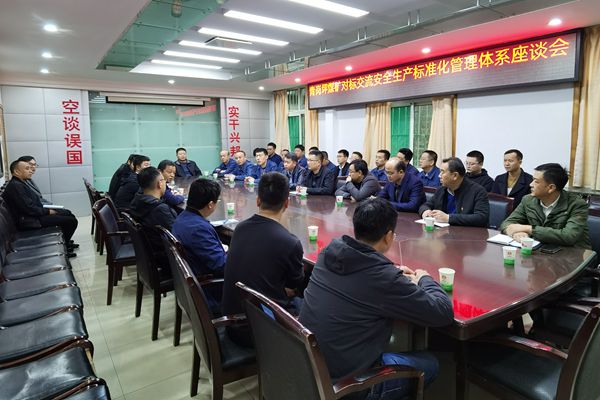 高文一行到礦后,與該礦領(lǐng)導(dǎo)和相關(guān)部室人員在機關(guān)二樓會議室進行了對標交流座談,雙方簡要介紹人員情況后,與會人員共同聽取了下石節(jié)煤礦創(chuàng)建一級安全生產(chǎn)標準化管理體系礦井等方面工作的情況介紹。深入了解了礦井基本情況、生產(chǎn)系統(tǒng)、安全生產(chǎn)標準化體系創(chuàng)建等方面工作開展情況,就礦井井田地質(zhì)及水文地質(zhì)、安全生產(chǎn)情況、災(zāi)害防治、人員配備、主提升系統(tǒng)、輔助提升系統(tǒng)、“一通三防”系統(tǒng)、排水系統(tǒng)和安全生產(chǎn)標準化建設(shè)等方面的工作細節(jié)進行了深入的溝通交流。