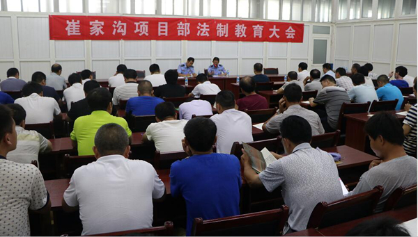 為進(jìn)一步加強(qiáng)法制教育宣傳,提升職工法制意識(shí),8月8日上午,崔家溝項(xiàng)目部在培訓(xùn)室召開了法制教育大會(huì),邀請(qǐng)崔家溝監(jiān)獄派出所兩名干警講授法制教育知識(shí)。該項(xiàng)目部各科室負(fù)責(zé)人、區(qū)隊(duì)主管書記、辦事員、材料員等80余人參加。