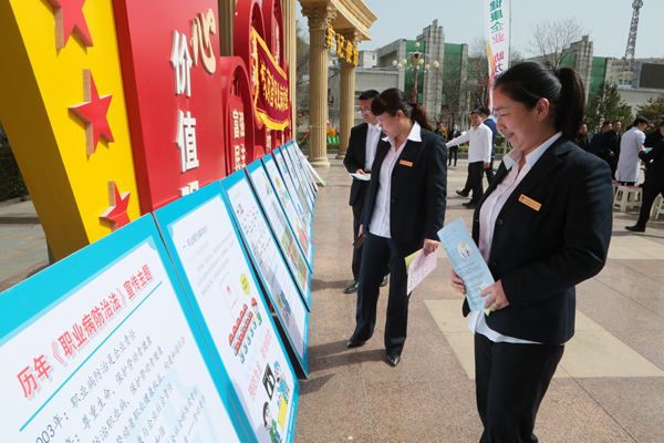 隨后,宣傳現(xiàn)場(chǎng),工作人員還為廣大干部職工家屬提供了測(cè)量血壓等健康服務(wù),積極為大家解答塵肺病臨床表現(xiàn)和如何做好防護(hù)等方面的健康知識(shí)。大家在陜西省職業(yè)病防治院情況介紹、職業(yè)病防治基本知識(shí)、用人單位職業(yè)病防治的主要責(zé)任、勞動(dòng)者的職業(yè)衛(wèi)生保護(hù)權(quán)利、女職工勞動(dòng)保護(hù)特別規(guī)定和疫情防控等宣傳牌板前駐足觀看,通過(guò)學(xué)習(xí)不斷增強(qiáng)對(duì)職業(yè)健康防治知識(shí)的認(rèn)識(shí)和理解,全面消除和預(yù)防職業(yè)病危害,不斷提高自身的安全責(zé)任意識(shí)和自我保護(hù)能力。