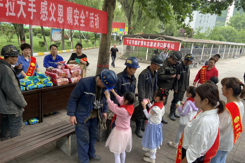 6月20日,在父親節(jié)這個特殊的日子里,下石節(jié)礦的礦嫂們帶著孩子,一大早就來到井口,將提前準備好繡著“平安”二字的鞋墊、洗潔精和滿含愛心的祝??ㄋ徒o上下井職工手中,千叮嚀萬囑咐:“爸爸,工作中一定要注意安全,我和媽媽等你平安回家”“老公,你的安全,就是咱們家最大的幸?!薄宦暵曎N心的問候,一句句深情的叮囑,讓礦工們深深地感受到了家人的期盼和親情的溫暖,也在每個即將步入工作崗位的職工心中筑牢了安全第一道防線。