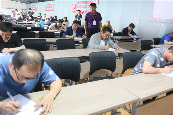按照比賽的標(biāo)準(zhǔn)嚴(yán)格要求自己,只有反復(fù)練習(xí)才能更熟練、更精準(zhǔn),在之后比賽考核中更有把握”。選手李彥軍說道。 在考試前期,參賽選手們結(jié)合報考項(xiàng)目,查閱了大量的技術(shù)方面的書籍,掌握了設(shè)備運(yùn)行、檢修和保養(yǎng)等方面的知識,做好了考核前的準(zhǔn)備工作。 筆試考核期間,礦先后組織了8場次筆試考試,選手們個個沉著冷靜,在答題紙上審題、答題,精準(zhǔn)答對著每一道題,現(xiàn)場監(jiān)考官們來回巡視,維護(hù)著考場紀(jì)律,保證著考核公平公正。實(shí)操考核期間,待現(xiàn)場監(jiān)考官們將考核細(xì)則、評判標(biāo)準(zhǔn)和注意事項(xiàng)重申后,選手們個個擦拳磨掌,運(yùn)用平日里掌握的技能,仔細(xì)查看完設(shè)備圖紙后,拿出工具對著設(shè)備拆卸、檢查、恢復(fù)和安裝,整套操作流程下來,用時最短找到問題根源解決恢復(fù)正常。