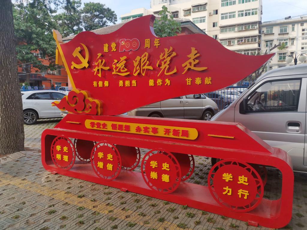 近日,在欣盛公司機(jī)關(guān)樓下擺放著一件專門為慶祝中國共產(chǎn)黨成立100周年制作的鐵藝黨建宣傳雕塑--永遠(yuǎn)跟黨走,不時吸引著來往的干部職工駐足觀看。