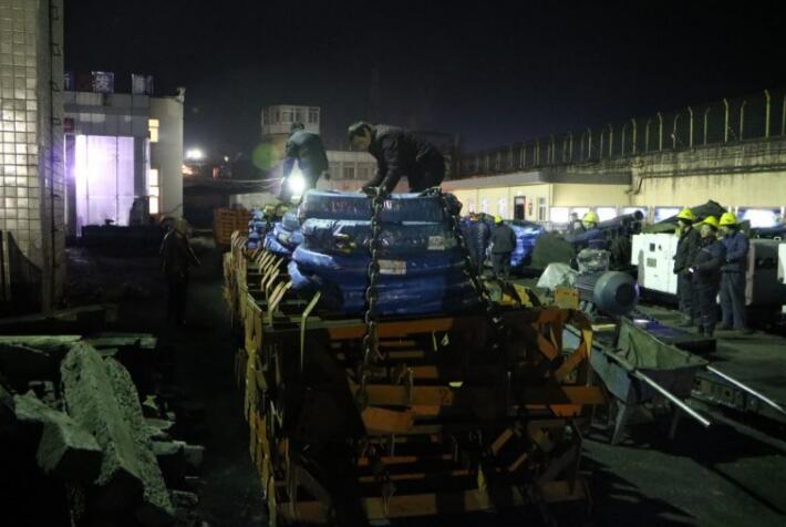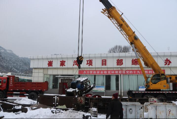 大雪紛飛,在崔家溝項目部工業(yè)廣場,一群干部職工在冰天雪地里把禁錮好的皮帶架子、液壓管路、設(shè)備列車、刮板輸送機等設(shè)備起吊裝車準備運往井下……這種場景在崔家溝項目部工業(yè)廣場內(nèi)隨時可見。連日來,崔家溝項目部干群冒大雪、戰(zhàn)嚴寒,全力以赴確保2303接續(xù)工作面安裝工作有序推進。