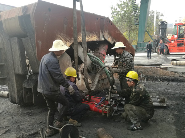 提起該設(shè)備制作的原由,大伙兒意猶未盡。日前該分廠職工接到集中拆解140架12000型及10500型液壓支架的維修任務(wù),可由于該套設(shè)備在戶外常年閑置,久不使用,銹蝕嚴(yán)重,致使整體拆解異常困難,而支架解體的第一關(guān)就是取出連接銷軸。整臺(tái)液壓支架的大小銷軸共有上百個(gè),大的單個(gè)重達(dá)一百多斤,面對(duì)單臺(tái)數(shù)十噸的龐然大物,職工們不懼困難,倒排工期,數(shù)人一組,克服場(chǎng)地狹小的不利因素,加班加點(diǎn)忘我勞作,或用天車懸吊重物連續(xù)沖擊銷軸,或掄起大錘猛擊發(fā)力,紛紛使出渾身解數(shù)輪流上陣,持續(xù)不停擊打銷軸,使出九牛二虎之力7天時(shí)間也才只解體了8臺(tái)支架,遇到特別難拆解更是頗費(fèi)周折,照此速度,若在元月份完成維修任務(wù)勢(shì)必成為空談。