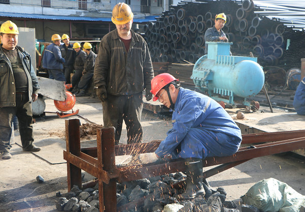 當(dāng)日凌晨4時(shí),開始載重拉力試驗(yàn),第一次掛3輛重型礦車全速運(yùn)行至井底30米處實(shí)施緊急制動,將車升井后對預(yù)留記號進(jìn)行測試對比,無變化,試驗(yàn)合格;第二次掛6輛、第三次掛9輛……經(jīng)過對預(yù)留記號進(jìn)行對比,均無變化,三次試驗(yàn)全部合格,可以投入使用。至此,這場經(jīng)過20余小時(shí)的辛苦付出奮戰(zhàn),副絞車房絞車鋼絲繩倒頭及鉤頭制作任務(wù)順利完成,極大確保了人、物、料的運(yùn)輸安全,推動了“百日安全”活動深入開展。