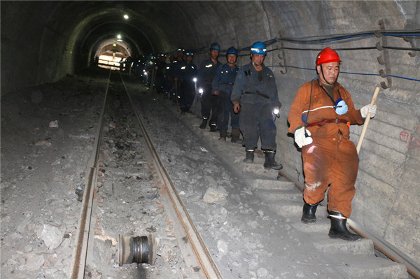 9月29日,副井提升系統(tǒng)更換首繩工作有序進行,罐籠停止運行,職工需要從北風(fēng)井工業(yè)廣場徒步行進2000余米,再奔赴各崗位和出入井上下,其中北斜井巷道17°大傾角、700余米共數(shù)千階臺階,徒步行進將對體力和毅力帶來重重考驗。又正值智能化綜采設(shè)備安裝硬仗即將打響和保障供應(yīng)的關(guān)鍵關(guān)口,全礦干部職工在艱巨任務(wù)和艱辛征途面前不畏艱難,勇?lián)厝我闳贿x擇節(jié)日期間堅守崗位忙生產(chǎn)。