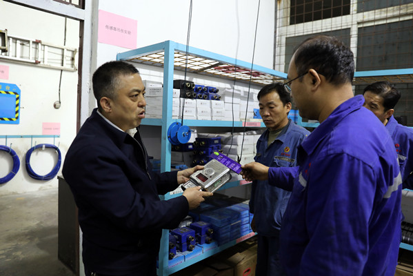 該裝置安全性能高,結(jié)構(gòu)簡(jiǎn)單,易于操作,一舉解決了工作人員在日常維護(hù)標(biāo)校時(shí)必須登高作業(yè)的問(wèn)題,降低了作業(yè)風(fēng)險(xiǎn),檢修儀器更為方便快捷,節(jié)省時(shí)間,提高工效。 監(jiān)測(cè)監(jiān)控系統(tǒng)作為安全生產(chǎn)的“千里眼”,是實(shí)現(xiàn)實(shí)時(shí)感知預(yù)警的重要手段,各類傳感器吊掛方向、角度的標(biāo)準(zhǔn)要求極為嚴(yán)格。在固定升降裝置試驗(yàn)階段,發(fā)現(xiàn)懸掛頂端距手把距離較長(zhǎng),在升降滑輪時(shí)方向時(shí)常跑偏,無(wú)法保持固定,一度形成困擾。監(jiān)測(cè)技術(shù)人員反復(fù)琢磨,再次聯(lián)系生活常識(shí),奇思妙想提出向頂部加設(shè)2個(gè)八字環(huán),再通過(guò)2根繩子使用索降8字扣穿繩法,解決了上下移動(dòng)時(shí)方向無(wú)法固定這一難題。依靠職工群眾智慧,一個(gè)個(gè)小創(chuàng)意發(fā)揮出助力安全生產(chǎn)的大作用。