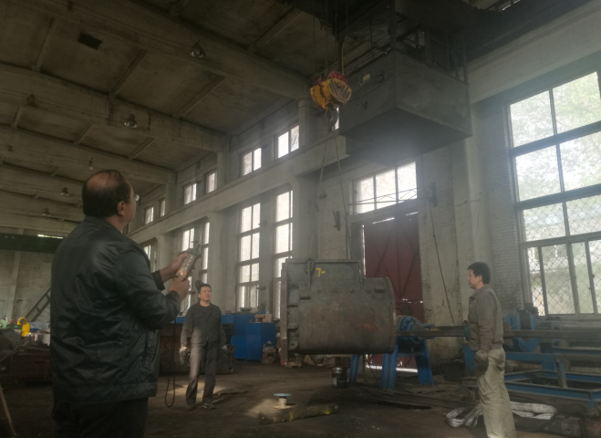 該分公司(廠)組織工程技術人員密切配合攻難關,集思廣益解難題,精心對車間內老舊天車的吊裝操控系統(tǒng)進行技術改造。改造在不破壞設備原有人工操作系統(tǒng)的基礎上,通過線路連接遙控操作面板與天車操作臺的方法,將天車駕駛室內原有電路及遙控器電路與電控柜相聯(lián)通,成功加裝遙控裝置,同時在傳動系統(tǒng)上增加電液推桿制動裝置,按照制動連接桿、軸相互關聯(lián)的原理,充分利用液壓油缸的最大行程和收回的最短距離,由電液推桿連接制動連桿,最終將集成信號傳導為操作指令實現(xiàn)遙控作業(yè)。