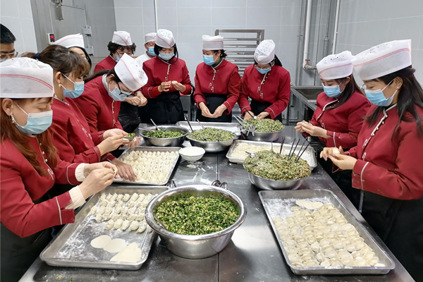 冬至前夕,在該礦職工食堂操作間內(nèi),女工們?cè)诘V工會(huì)和后勤部的精心組織下,任務(wù)明確、分工合理,有的和面、有的拌餡、有的搟餃子皮、有的包餃子,各個(gè)工序井然有序緊密銜接著,現(xiàn)場(chǎng)呈現(xiàn)出了一派熱鬧非凡的景象。