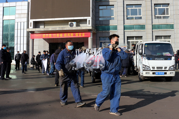 1月17日,玉華煤礦信息中心樓前年貨發(fā)放現(xiàn)場,清點數(shù)目、輪流裝卸、前拉后推、肩挑身扛,一份份沉甸甸的年貨為職工送去新春祝福,礦區(qū)洋溢和諧喜慶年味足。