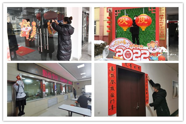 在辦公樓LED大屏播放著新年祝福語(yǔ),進(jìn)門處兩側(cè)懸掛了“歡度春節(jié)”四個(gè)字樣的燈籠,張貼了虎年吉祥卡通圖案,辦公樓、信息樓、職工食堂和樹枝上的紅燈籠已經(jīng)全部懸掛到位,區(qū)隊(duì)樓職工們也正在欣喜地張貼礦黨政送來(lái)的祝福春聯(lián),礦區(qū)內(nèi)外、道路兩側(cè),華麗的燈光也已經(jīng)全部安裝到位,整個(gè)礦區(qū)被各種裝扮的分外靚麗,凝聚了礦黨政對(duì)全礦干部職工的美好祝福,也讓職工家屬感受到了濃濃的春意。