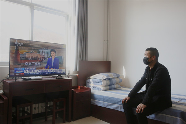 分房現(xiàn)場,從職工入住登記、分配鑰匙、領(lǐng)取被褥和工作人員引導入住等全程各個環(huán)節(jié)上,現(xiàn)場組織有序,工作合理分配,尤其是礦黨政加入分房環(huán)節(jié)后,忙而不亂的分房現(xiàn)場顯得更加井然有序,使得整個分房進度瞬間提升了好幾倍。 該礦職工張某某坐在宿舍內(nèi)自己的床鋪上,雙手時而十指緊扣,時而反復搓擦,時而手掌護膝,雙目觀看著電視內(nèi)的新聞,時不時的還欣賞打量著房間內(nèi)的新環(huán)境,臉上的神態(tài)和身體上的動作無法掩飾內(nèi)心的喜悅之情。
