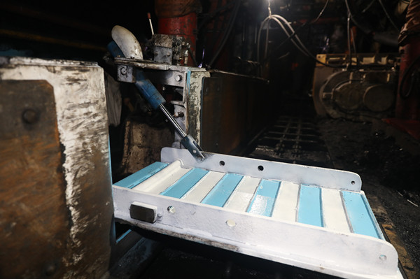在自動(dòng)化、智能化技術(shù)攻關(guān)中,各項(xiàng)目組群策群力先后“幾易其稿”,將行人踏板控制由滑輪鋼繩牽引方式改進(jìn)為液壓控制系統(tǒng),讓踏板升降更為平穩(wěn);把操作使用時(shí)系統(tǒng)保護(hù)由手動(dòng)閉鎖改進(jìn)為電磁感應(yīng)智能閉鎖,讓通行更加安全安心;巧妙改進(jìn)無高差結(jié)構(gòu)讓通行無障礙,舉步輕松直達(dá)目的地。最終,經(jīng)過安全質(zhì)量驗(yàn)收的自動(dòng)液壓行人直通成套裝置主要由閉鎖裝置、鉸接裝置、液壓缸伸縮、乳化泵、操作閥等部件組成,通過乳化泵向操作閥供液,打開銷式閉鎖裝置,感應(yīng)閉鎖系統(tǒng),控制操作閥利用液壓缸伸縮作為動(dòng)力升降行人踏板,為進(jìn)出工作面架設(shè)起一座“安全橋”。