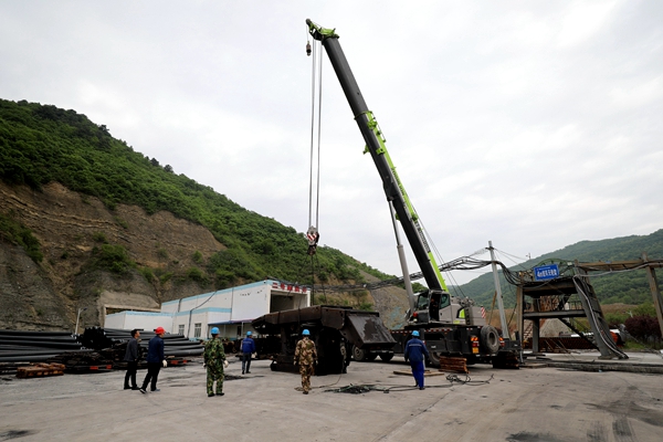 4月29日零點班,下石節(jié)煤礦首個下分層222工作面首臺液壓支架在絞車的牽引下,緩緩從二號副斜井井口駛出“平穩(wěn)著陸”,標志著礦井下分層222工作面完成使命,大型綜采設(shè)備回收開啟新征程。
