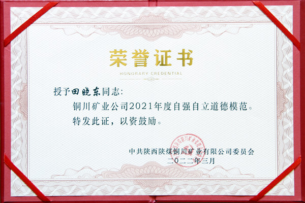 “田師傅,近日你又獲得銅川礦業(yè)公司‘自強自立’道德模范榮譽稱號,有什么感受?”
