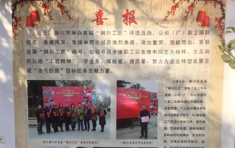 近日,一幅制作精美,反映“銅川工匠”參賽及獲獎選手的喜報,引來眾多職工在機電分公司(廠)公示欄前駐足圍觀,再次引發(fā)職工和往來客戶對該單位“銅川工匠”參賽職工的關(guān)心關(guān)注,大家對參賽者的絕活技能贊不絕口,羨慕敬佩之情溢于言表。