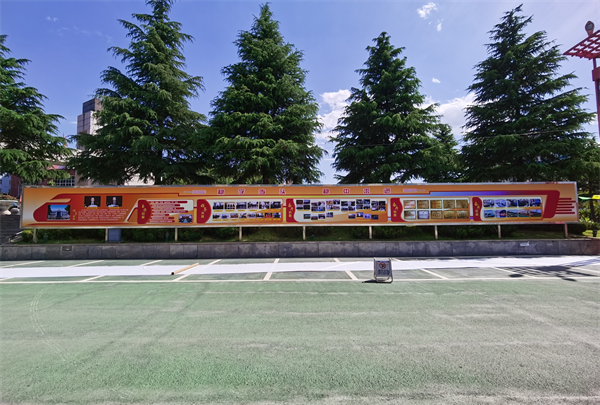 礦井對企業(yè)文化墻的觀賞效果做了規(guī)劃性設(shè)計,布局統(tǒng)一設(shè)計風(fēng)格,劃分不同專區(qū),設(shè)置版塊主題,采用紅色主色調(diào)輔以黃色彰顯朝氣,整體以飛馳列車造型,寓意礦井團(tuán)結(jié)奮進(jìn)、銳意進(jìn)取、奮斗拼搏的文化精神,把“五好五強”核心理念以立體的形象展現(xiàn),讓文化“看得見”“摸得著”,使文化精髓在潛移默化中深植內(nèi)心深處,真正發(fā)揮文化引領(lǐng)優(yōu)勢。