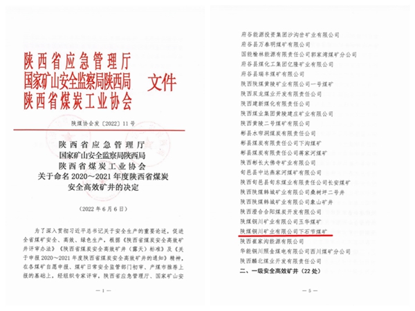 近日,從陜西省應(yīng)急管理廳、國家礦山安全監(jiān)察局陜西局、陜西省煤炭工業(yè)協(xié)會傳來喜訊,下石節(jié)煤礦以扎實的工作業(yè)績榮膺“2020-2021年度陜西省煤炭特級安全高效礦井”稱號,這是繼今年礦井榮登“2020—2021年度煤炭工業(yè)特級安全高效礦井”光榮榜后榮獲的又一重量級褒獎,為企業(yè)安全高質(zhì)量發(fā)展再添“續(xù)航力”。