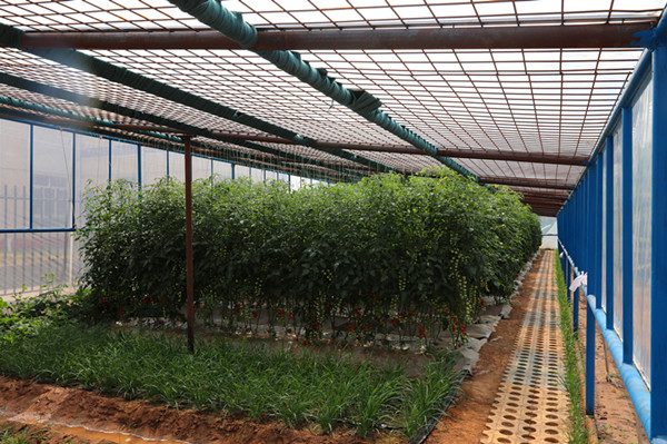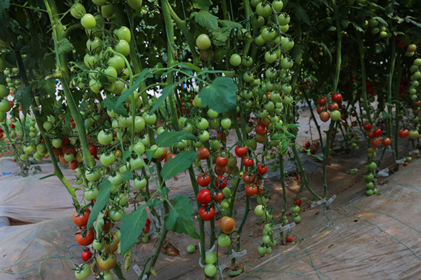 在春耕時種植了番茄、辣椒、黃瓜、茄子、圣女果、甜瓜等20多個品種,物業(yè)公司采用將滴灌設(shè)施提前敷設(shè)在保溫地膜下的做法,直接澆灌蔬菜的根部,在節(jié)約用水,澆地均勻的同時,兼顧了大棚內(nèi)濕度始終適宜,防止土壤板結(jié)。根據(jù)天氣情況,通過卷簾、放風(fēng)、調(diào)光、控溫對大棚內(nèi)光、溫、水、氣等進(jìn)行精準(zhǔn)調(diào)節(jié)。同時,將養(yǎng)殖的禽畜糞便收集起來,采用有機(jī)肥摻少量磷肥發(fā)酵干燥后形成肥料的方法,為種植綠色、健康、安全蔬菜提供了保證。充分利用日光溫室大棚的優(yōu)勢,讓各類蔬菜分批成熟,實(shí)現(xiàn)“土地不閑置,月月有收成”。