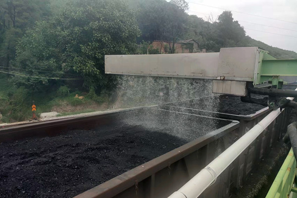 走進(jìn)該礦鐵路裝運站,一列載滿黑色“烏金”列車從鐵路抑塵站龍門架下緩緩駛過,一道道水霧噴射而出,白色的“液體篷布”抑塵劑被均勻噴灑在列車中的煤炭上,沖洗后和煤炭緊密地粘連在一起,在敞車頂部形成了類似篷布一樣的覆蓋膜,在陽光照射下,似乎一道漂亮的彩虹一路隨行,有效抑制列車行使途中產(chǎn)生的揚塵,落實源頭治理責(zé)任,保護(hù)好運輸沿途環(huán)境,減少了運輸中的煤炭損耗。
