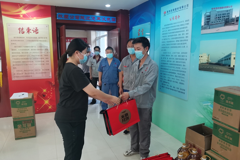 丹桂飄香,月圓中秋。在中秋佳節(jié)來臨之際,欣塑公司為職工發(fā)放了月餅、食用油等物品,并送上了該公司黨政節(jié)日的祝福和暖暖關(guān)愛。