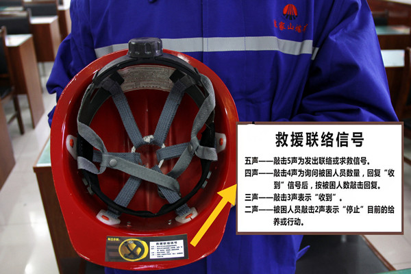據(jù)悉,為建立礦山(隧道)事故中被困人員與救援人員約定的聯(lián)絡(luò)溝通,應(yīng)急管理部辦公廳印發(fā)《礦山(隧道)事故救援聯(lián)絡(luò)信號(試行)》。即,“5432”救援聯(lián)絡(luò)信號,五聲為尋求聯(lián)絡(luò),四聲為詢問被困人員數(shù)量,三聲為收到,二聲為停止。自國家應(yīng)急管理部《礦山(隧道)事故救援聯(lián)絡(luò)信號》頒布實施以來,該礦高度重視,積極響應(yīng),迅速行動,精心部署安排,及時采用防水材料將聯(lián)絡(luò)信號主要內(nèi)容印制成標(biāo)識,粘貼于職工安全帽殼內(nèi)部醒目位置,方便職工隨時熟悉和掌握,確保井下一線職工準確理解和掌握聯(lián)絡(luò)信號內(nèi)容。