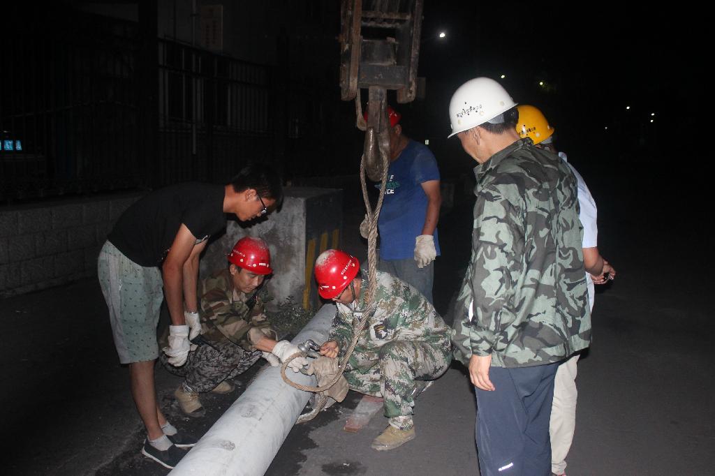 退去一天的暑熱,天色漸漸已晚,而柴家溝煤礦磅房附近卻仍是一片緊張而忙碌的施工場面。現(xiàn)場兩輛大型“巨無霸”商混車和吊車以及施工人員在不同位置,已經(jīng)為6噸多重的水泥砼桿起吊工作做好了準備,要想將這“龐然大物”成功起吊,車輛和地面人員必須密切配合才能順利完成?,F(xiàn)場施工人員緊張有序地忙碌著,他們一邊維持著現(xiàn)場秩序,確保安全,一邊鎮(zhèn)定的指揮車輛,校正桿位,嫻熟的操作、默契的配合,在場的所有人都盡心盡力、各司其職,專注地做好每一個細節(jié),整個現(xiàn)場忙而不亂、秩序井然。當這個6噸多重的“龐然大物”矗立導指定位置時,大家臉上漏出欣慰的笑容,而此時,天已經(jīng)黑了,大家為了趕工期,不畏艱辛、廢寢忘食,沒有一個人叫苦叫累。他們說:只要我們的辛苦工作,能確保礦井的安全供電,那么我們所有的付出都是值得的。