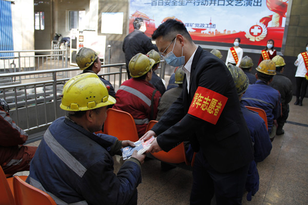 “久別的人盼重逢,重逢就怕日匆匆,霧也朦朦累也朦朦......”美妙的歌聲在該礦井口回蕩,一場(chǎng)安全料包十足的文藝演出正在這里精彩上演。整場(chǎng)活動(dòng)在歌曲《久別的人》中拉開了序幕。青年志愿者馮朝楠用一首耳熟能詳?shù)慕?jīng)典歌曲,膾炙人口的旋律,激昂高亢的歌聲,催人奮進(jìn)的歌詞,唱出了大家對(duì)堅(jiān)守一線的礦工兄弟的牽掛與期盼。