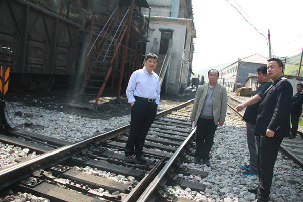 該分公司領(lǐng)導(dǎo)在玉華車站,帶領(lǐng)大家看著道面、觀著軌距、查著機車。孫建軍說:要加強機車保養(yǎng)、線路維護、安全生產(chǎn)、職工作業(yè),確保玉華礦煤炭運輸。