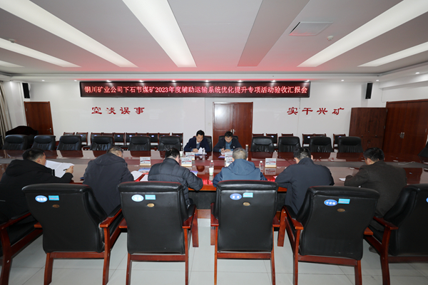 在匯報(bào)會(huì)上,驗(yàn)收組領(lǐng)導(dǎo)聽(tīng)取了該礦從工作思路、礦井運(yùn)輸系統(tǒng)概況、主要任務(wù)、礦井運(yùn)輸系統(tǒng)優(yōu)化工作完成情況、輔助運(yùn)輸優(yōu)化提升取得的效果、礦井輔助運(yùn)輸系統(tǒng)存在的的短板六個(gè)方面的工作匯報(bào),就運(yùn)輸系統(tǒng)優(yōu)化提升前后變化等方面工作細(xì)節(jié)進(jìn)行了交流。