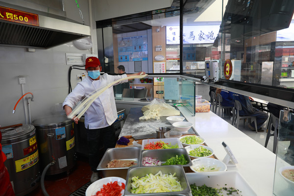 隨著天氣逐漸轉(zhuǎn)熱,餐廳根據(jù)季節(jié)變化和時(shí)令蔬菜情況,對菜單進(jìn)行全新升級(jí)。在盆盆魚、涼拌菜等20余個(gè)菜品的基礎(chǔ)上,更新帶來了“熱門麻辣燙”“地道牛肉面”和牛羊肉泡饃,用風(fēng)味帶來舌尖上的幸福,以陜味讓職工吃得舒心。