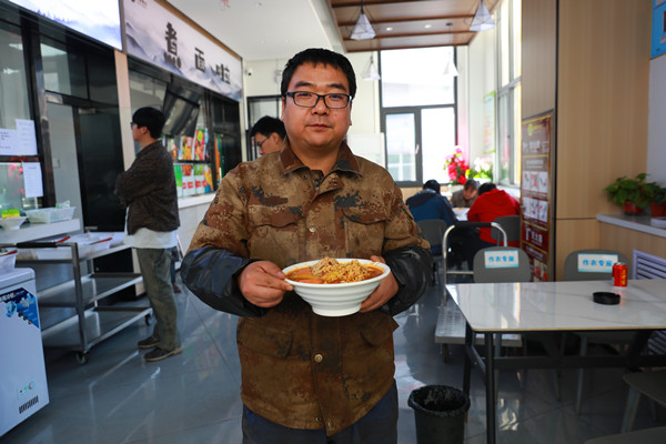 中午12點(diǎn),不少職工來到餐廳,明廚亮灶下近距離觀看廚師烹制“火出圈”的麻辣燙,葷素搭配,自行挑選,稱重計(jì)量,高湯冒熟后再加上香味撲鼻的油潑辣子,一口下去“熱辣滾燙”,使人胃口大開,價(jià)格公道實(shí)惠,職工直呼“快來嘗鮮,根本停不下來”。另一窗口,一個(gè)面劑子在廚師手中搓搓、揉揉再抻一抻,不大會(huì),一碗“一清、二黃、三白、四紅、五綠”的牛肉面就被端上飯桌,讓人垂涎欲滴。