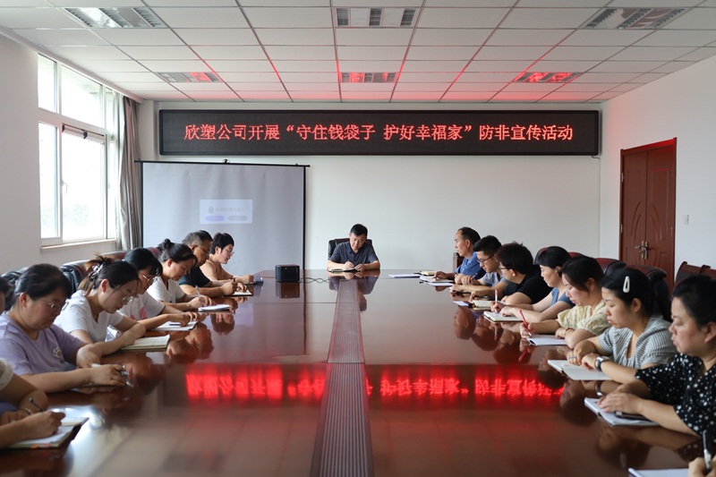 6月份以來(lái),欣塑公司深入開(kāi)展“守住錢袋子 護(hù)好幸福家”防范非法集資宣傳教育活動(dòng),厚植全員防非、主動(dòng)拒非的良好氛圍,切實(shí)守護(hù)好干部職工的“錢袋子”。