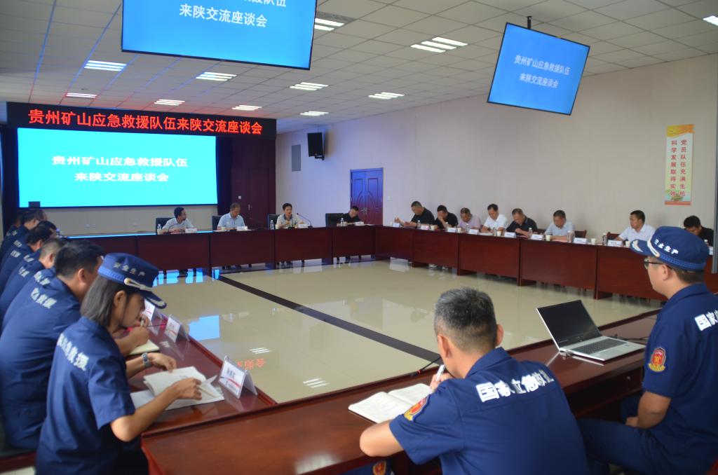 8月15日上午,貴州煤礦安全監(jiān)察局救援指揮中心主任蔣興法帶領(lǐng)國家礦山應(yīng)急救六枝隊(duì)、國家礦山應(yīng)急救援黔西南隊(duì)等10支礦山應(yīng)急救援隊(duì)伍到公司救護(hù)大隊(duì)考察學(xué)習(xí),國家礦山安全監(jiān)察局陜西局救援指揮中心副主任鐘紅良、陜西煤業(yè)相關(guān)部門負(fù)責(zé)人及公司救護(hù)大隊(duì)班子成員和相關(guān)業(yè)務(wù)負(fù)責(zé)人參加了座談交流。