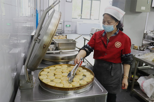在職工食堂,該礦后勤部組織服務(wù)人員對(duì)照手工月餅制作工藝,從發(fā)面、拌餡、搟皮、包餡、模具成型到烘烤、包裝等流程,實(shí)行一體化流水線作業(yè),做到了任務(wù)分工明確,服務(wù)人員個(gè)個(gè)巧手翻飛,保證了一塊塊金黃酥脆香甜的月餅快速制作完成,手工月餅品相極佳、香甜誘人,職工可在就餐時(shí)間通過(guò)打餐窗口領(lǐng)取,能夠滿足礦井千余名職工需求,使其感受到傳統(tǒng)中秋月餅味道,感受著傳統(tǒng)節(jié)日的魅力。