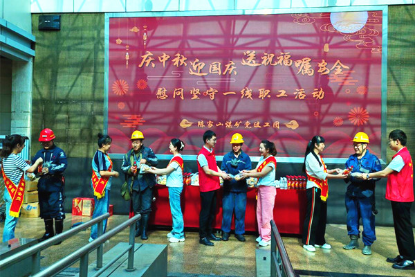 又是一年中秋至,井口處處顯真情。9月17日,陳家山礦開展“慶中秋迎國慶送祝福囑安全”井口慰問活動,將精心準備的中秋“禮品”送到節(jié)日當天依然堅守崗位的一線職工手上,并為他們送上誠摯的節(jié)日祝福,讓他們感受到企業(yè)的關懷和溫暖。