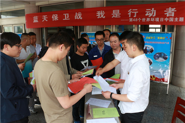 “呵護(hù)自然生態(tài)、能源資源節(jié)約、減少污染產(chǎn)生、綠色低碳出行和關(guān)注生態(tài)環(huán)境,需要您與我們共同參與,守護(hù)一片藍(lán)天”,在世界環(huán)境日當(dāng)天上午,礦井青年環(huán)保志愿者奔走在雨中,向上下班職工發(fā)放環(huán)保知識(shí)宣傳單時(shí),呼吁職工群眾積極行動(dòng)起來,從一點(diǎn)一滴做起,樹立綠色生產(chǎn)、生活方式理念,打造“生態(tài)文明的礦區(qū)樣本”。