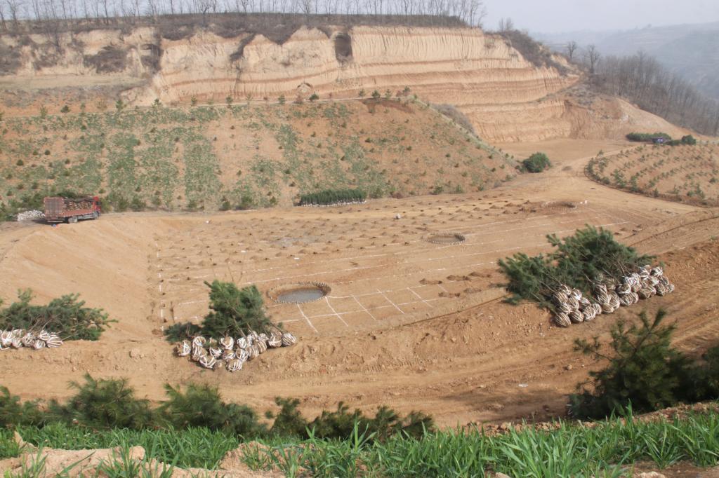 目前,該公司已完成了矸石山綠化的整體規(guī)劃,樹坑的挖掘,并成功種植了桃樹350余棵,白皮松、油松700余棵。該公司正在對新栽種的樹木進行修剪,灌溉,并對灌溉管道進行鋪設(shè)。后期將要栽種的白皮松等苗木也已運到植樹現(xiàn)場。