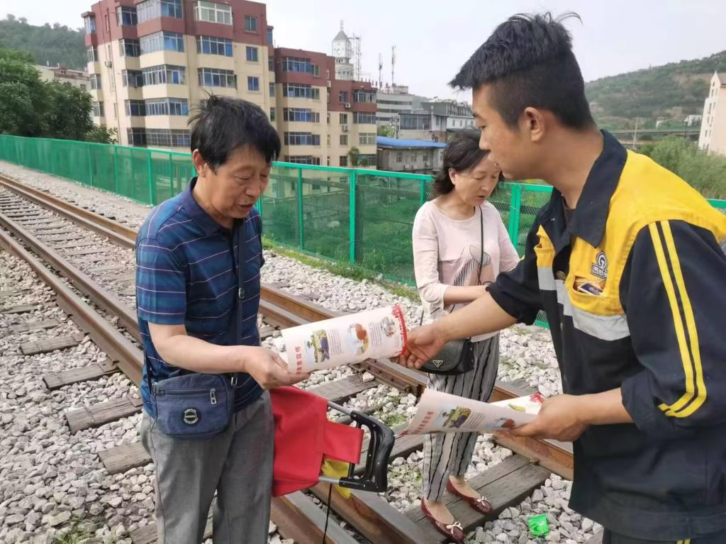 該分公司針對(duì)鐵路沿線居民出行特點(diǎn),組織人員深入重點(diǎn)路段與居民面對(duì)面宣傳安全常識(shí),以通俗易懂的方式向居民講解翻越鐵路護(hù)欄、在鐵路上坐臥、玩耍、拋扔物品、擺放障礙物和拆卸破壞鐵路設(shè)施設(shè)備的行為帶來(lái)的危害,并現(xiàn)場(chǎng)發(fā)放安全宣傳手冊(cè)、傳單等宣傳資料300余份。