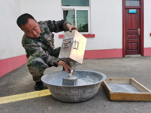 該礦救護中隊擔(dān)負著礦井緊急救援和輔助工作,每名救護隊員不論是日常工作還是體能訓(xùn)練都離不開呼吸器,而且每次使用過后都要更換呼吸器藥罐里的氫氧化鈣,以確保救護隊員的人身安全。之前救護隊員在給呼吸器藥罐換藥時,將氫氧化鈣倒在一個大籮筐里,將粉末和渣滓篩掉,然后用手一捧一捧的往藥罐里裝,費時費力還容易掉落浪費。