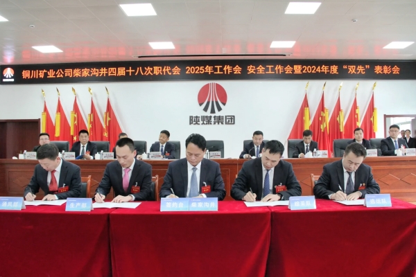 會(huì)上,企業(yè)方首席代表與職工方首席代表簽訂了礦井《2025年工資集體合同》及《2025—2027年女職工權(quán)益保護(hù)專(zhuān)項(xiàng)集體合同》,該礦領(lǐng)導(dǎo)與生產(chǎn)部、通風(fēng)部、綜采隊(duì)、選運(yùn)隊(duì)簽訂《2025年安全生產(chǎn)責(zé)任狀》。會(huì)議通過(guò)了行政工作報(bào)告的決議、安全工作報(bào)告的決議、礦井2025年工作要點(diǎn)及配套管理辦法的決議,通報(bào)了民主評(píng)議礦井領(lǐng)導(dǎo)班子和領(lǐng)導(dǎo)人員結(jié)果,宣讀了《關(guān)于表彰2024年度先進(jìn)集體和先進(jìn)工作者的決定》《關(guān)于表彰2024年度安全先進(jìn)集體和先進(jìn)個(gè)人的決定》,并進(jìn)行現(xiàn)場(chǎng)頒獎(jiǎng),希望以此次表彰為契機(jī),充分發(fā)揮模范引領(lǐng)作用,進(jìn)一步增強(qiáng)全體干部職工榮譽(yù)意識(shí),切實(shí)以榜樣先進(jìn)事跡激勵(lì)人心、強(qiáng)化責(zé)任擔(dān)當(dāng)、激發(fā)工作熱情,激勵(lì)廣大職工在推進(jìn)礦井高質(zhì)量發(fā)展提檔升級(jí)中發(fā)揮主力軍作用。